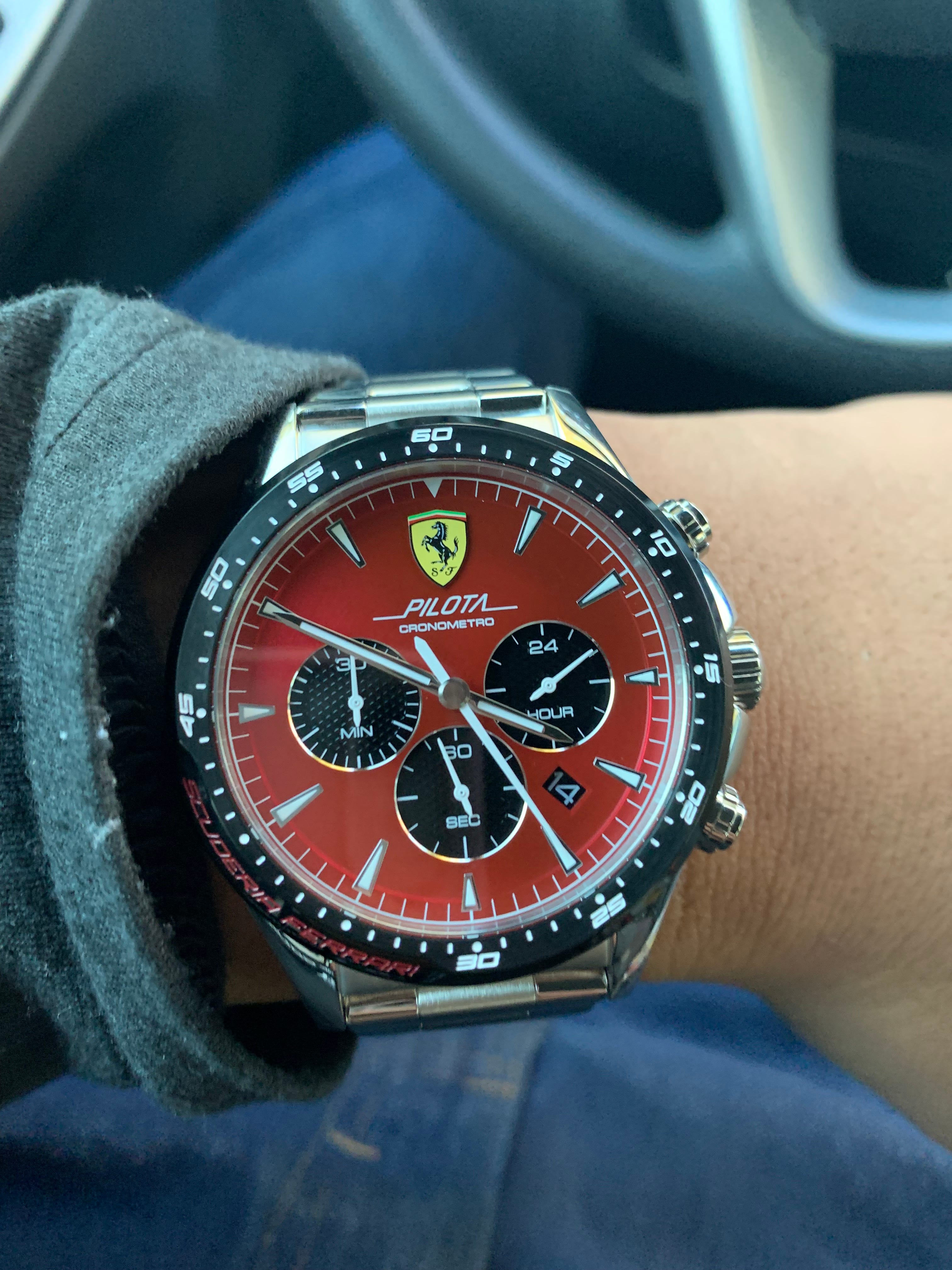 Michael Kors is about the same tier as Guess and Fossil as far as fashion watches go, alright? Movado is like a lower-tier luxury brand, but I bought my Scuderia Ferrari chronograph, um, and it’s still powered by a battery, but it’s only worth about $300 to $400. That’s not luxury; that’s fashion.