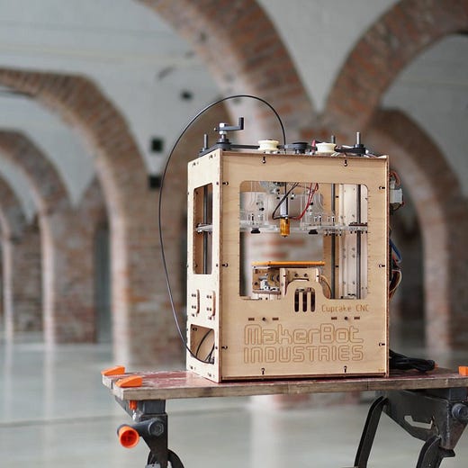 And I’ve mentioned **RepRap** before; you can just build your own printer. At the end of the day, a 3D printer is just a bunch of shapes, pulleys, and a ‘hot end.’